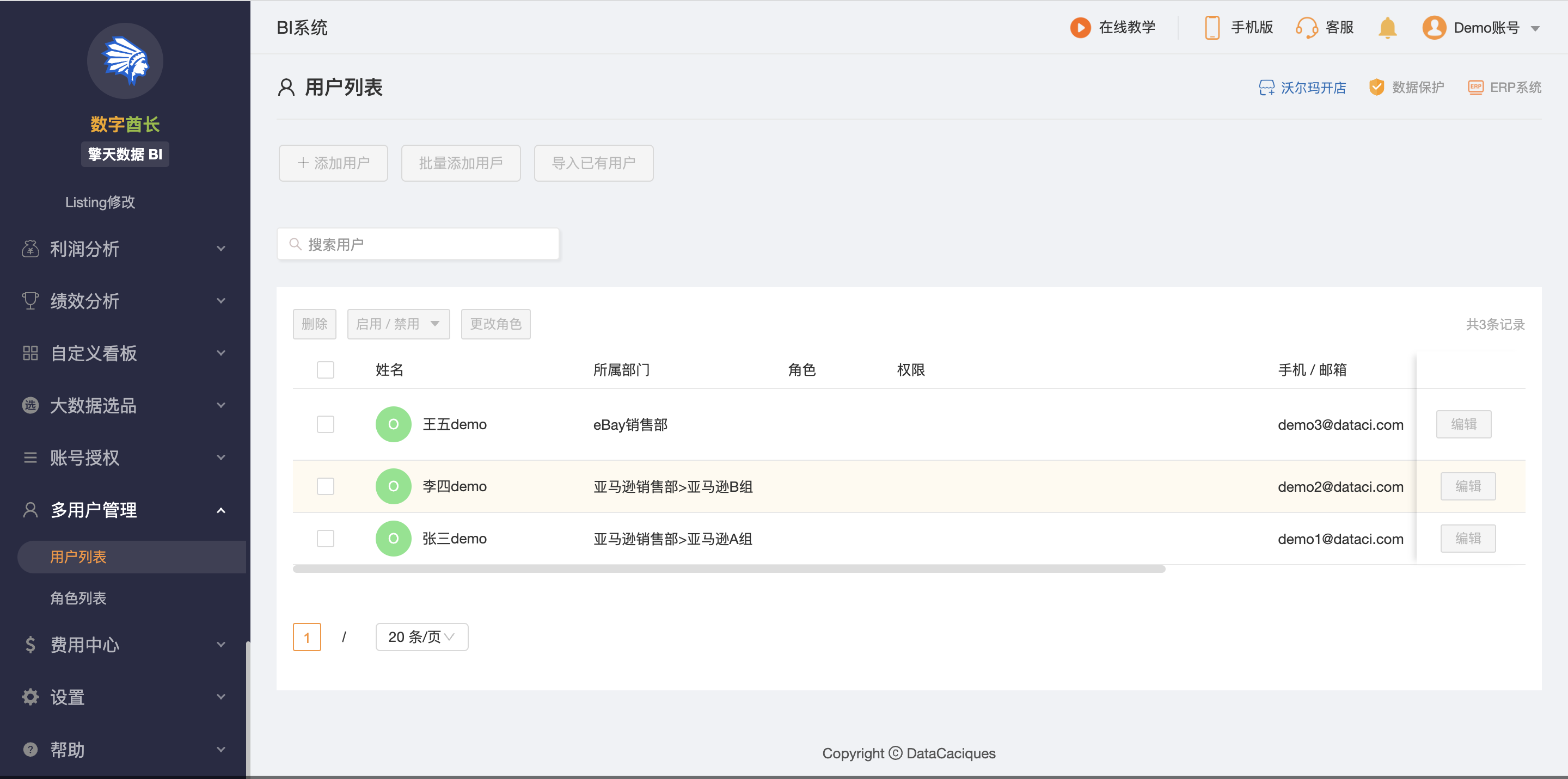 为数据、刊登、订单、客服、仓库等各个模块设计了完整清晰的权限