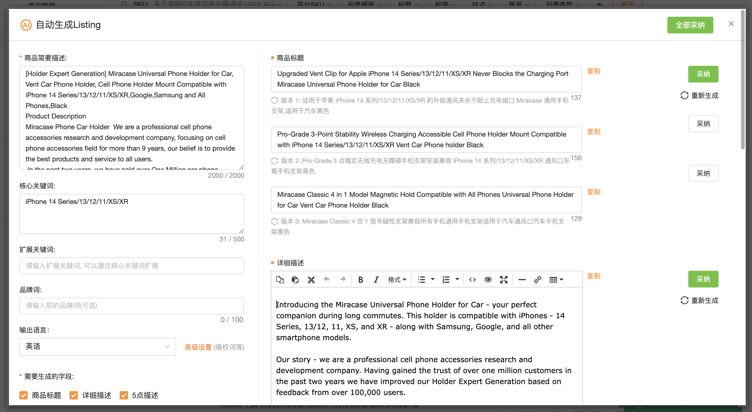 数字酋长的极速Listing修改已经修改了10亿+的Listing