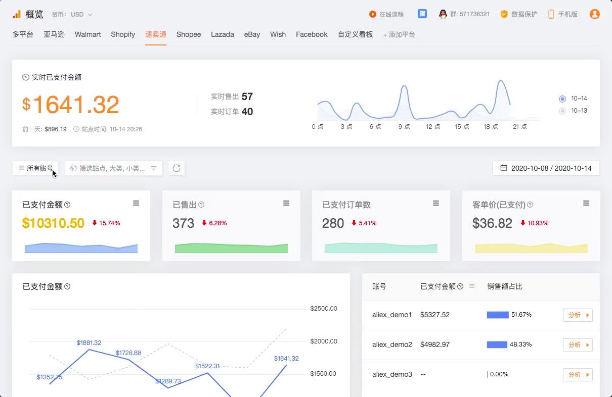 一手掌握各大平台多账户即时销售和账户情况