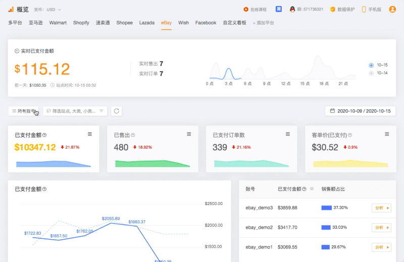 多平台多店铺 运营分析 团队绩效分析 广告分析 自动调价 数据驾驶舱