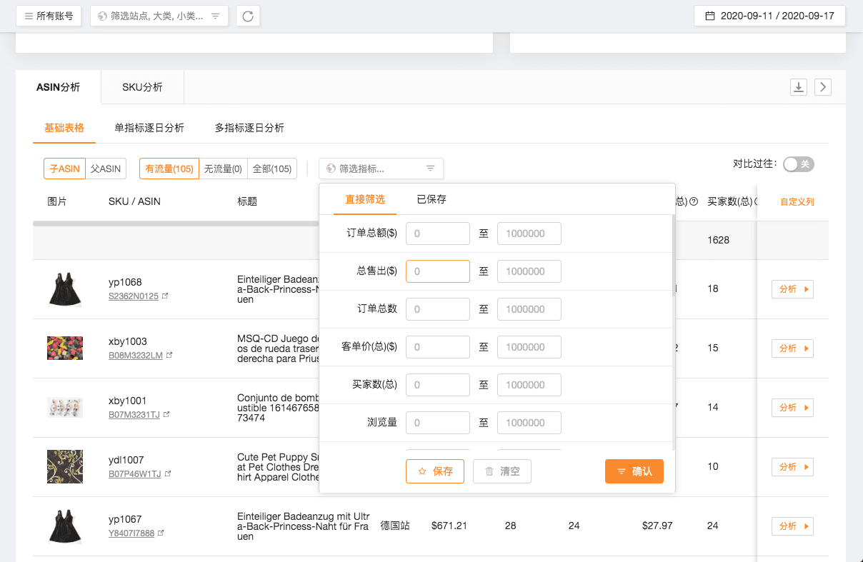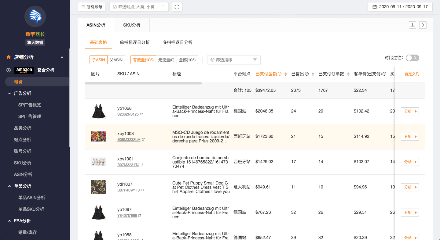 品类、站点、店铺、SKU、ASIN、品牌……